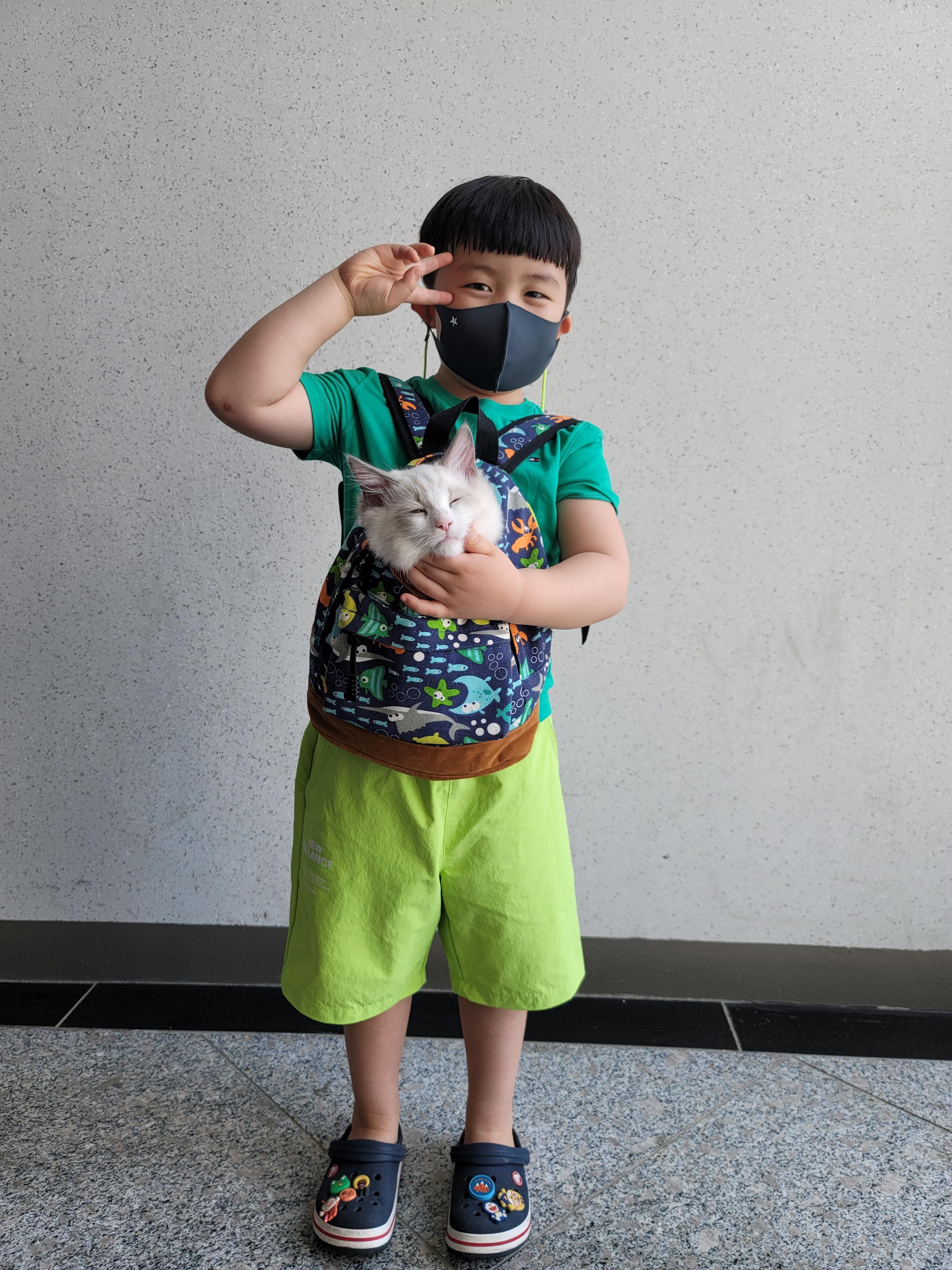 아들가방에 고양이를 안고 또 제가 안고 해서